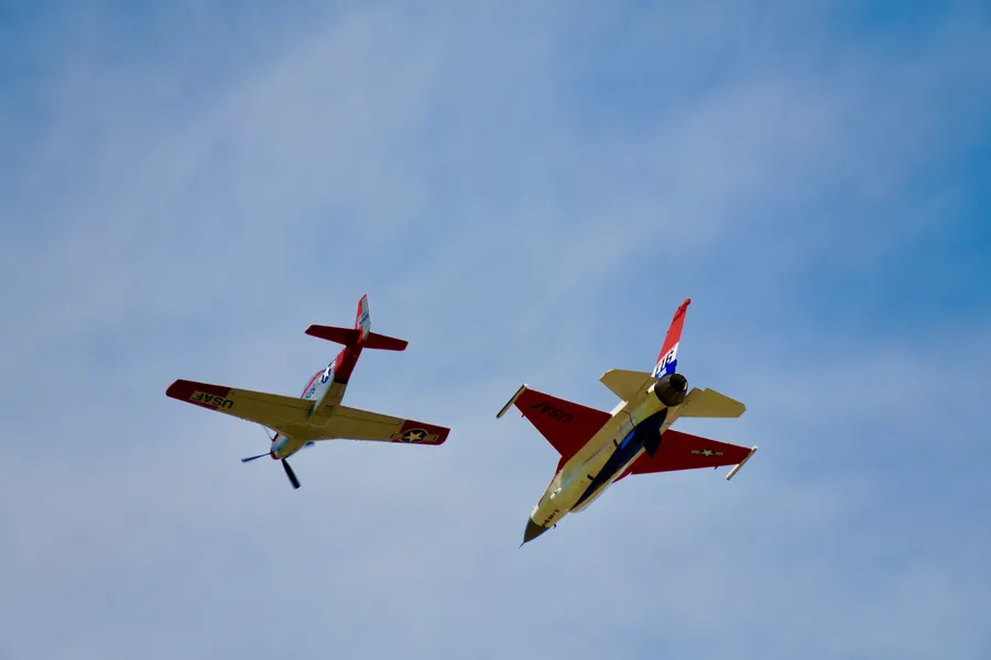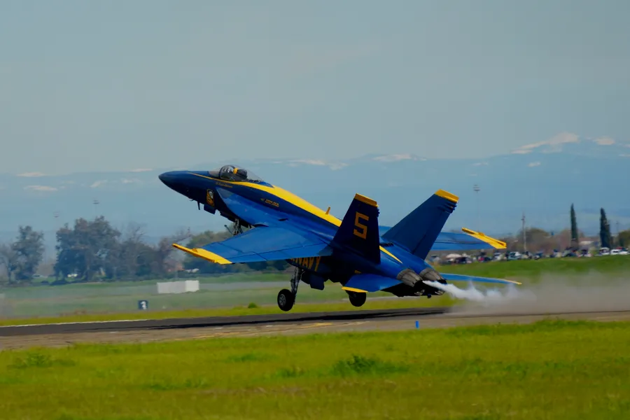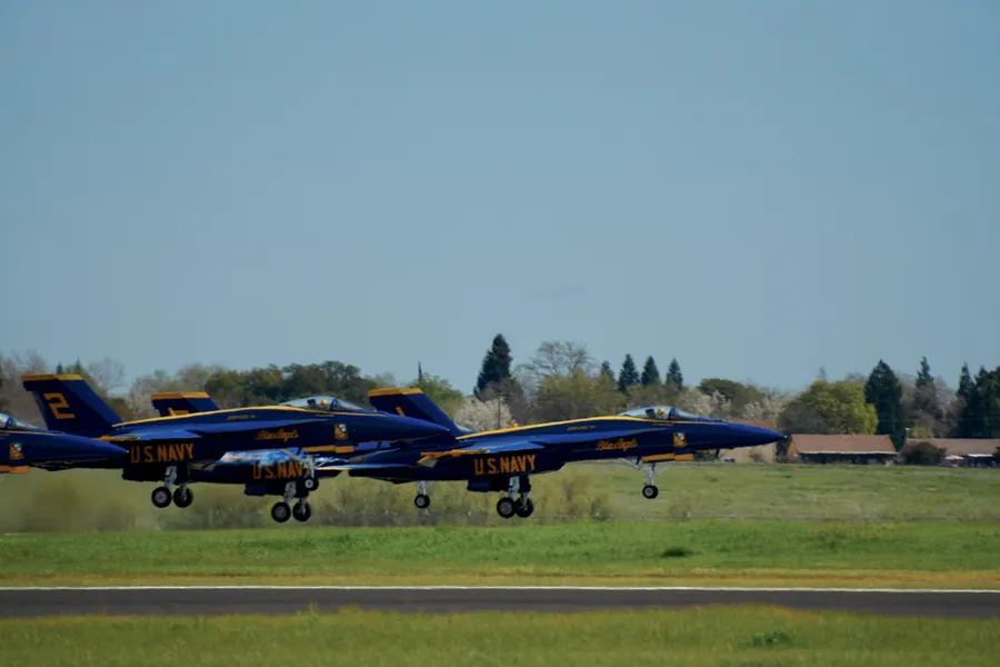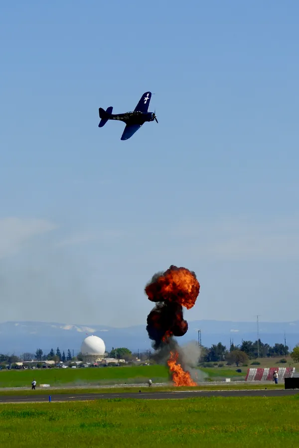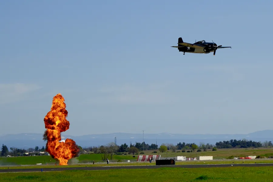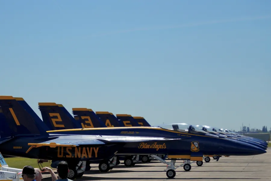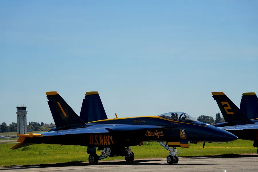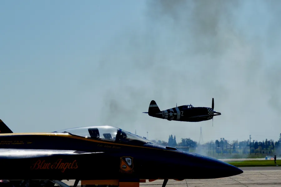 Aerobatic performances and military aircraft at the California Capital Airshow in Sacramento.