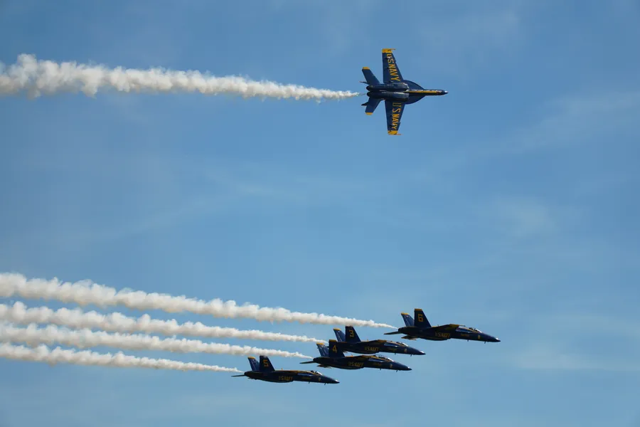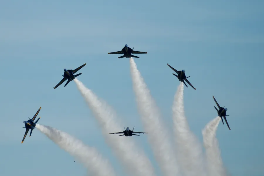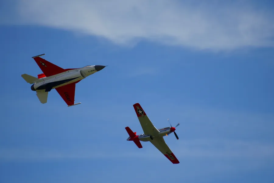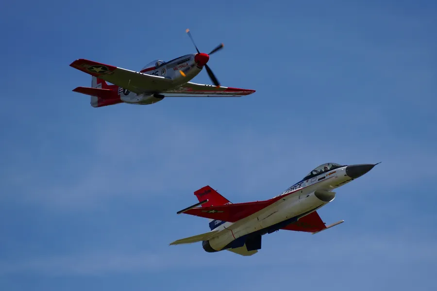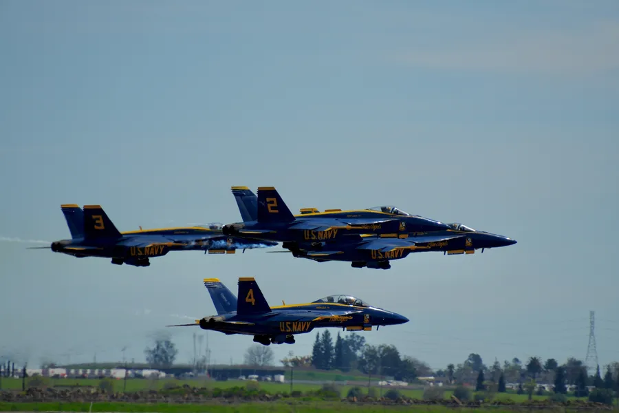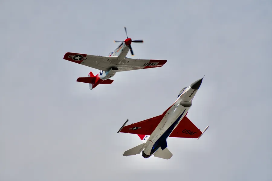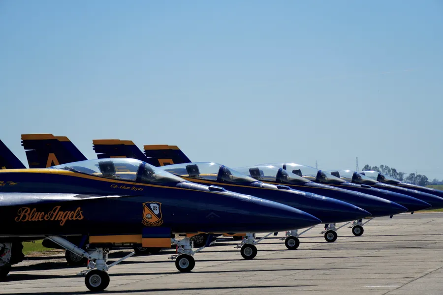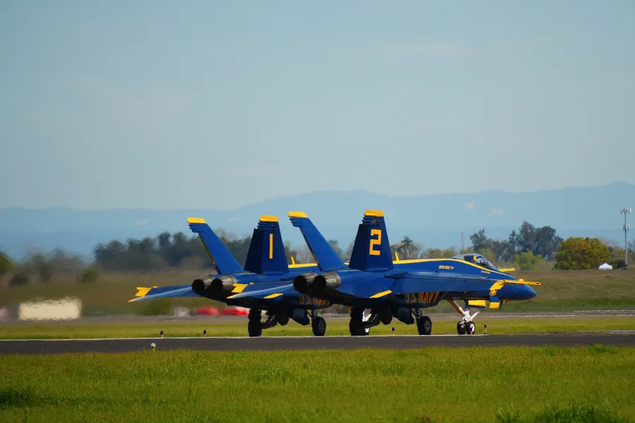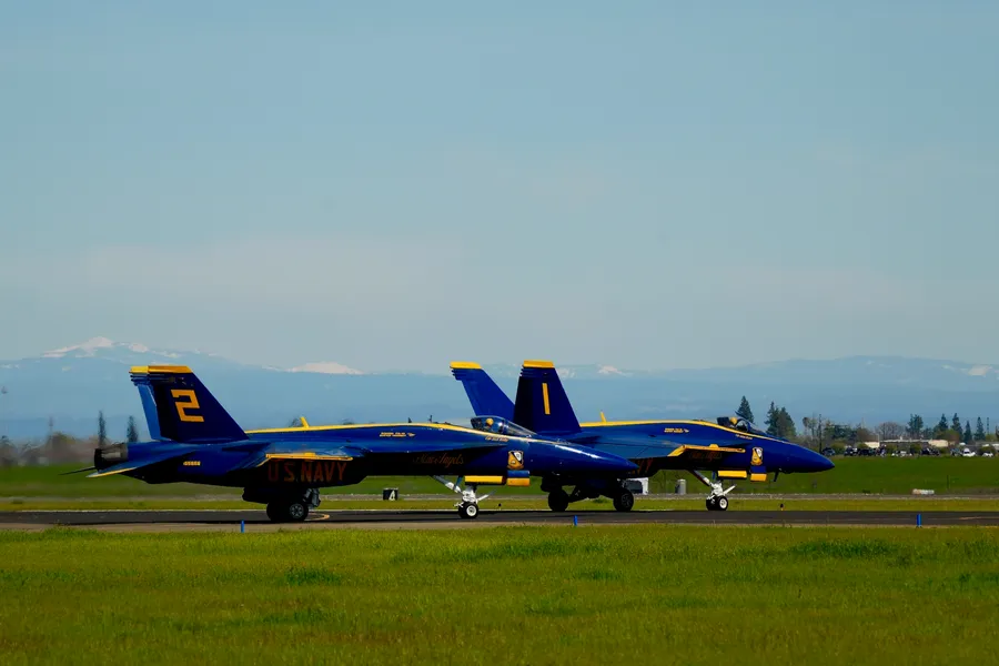 Aerobatic performances and military aircraft at the California Capital Airshow in Sacramento.