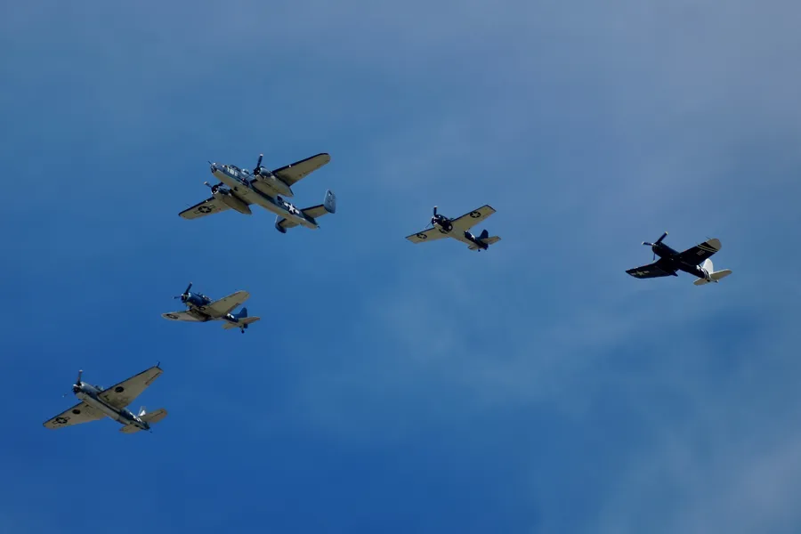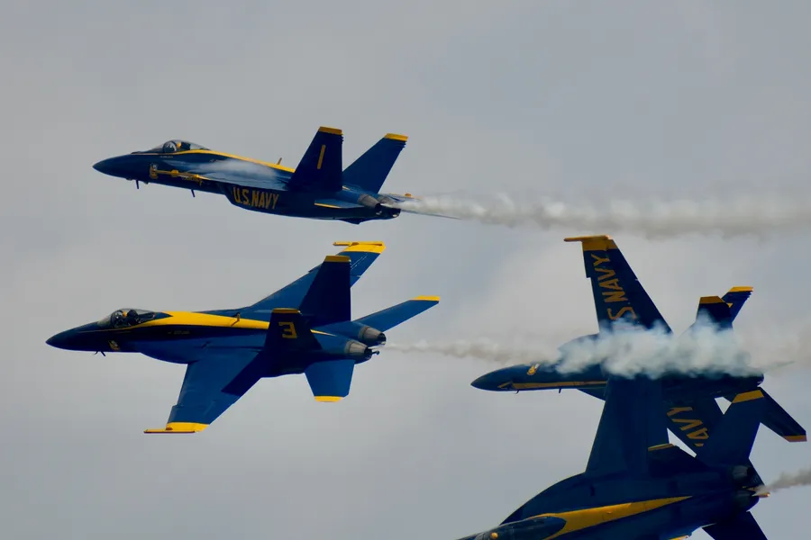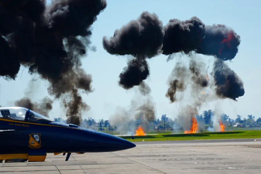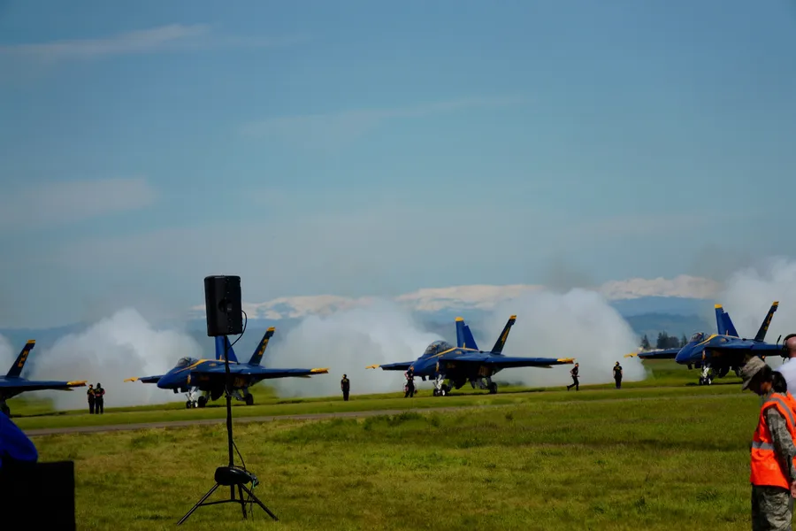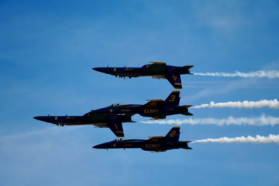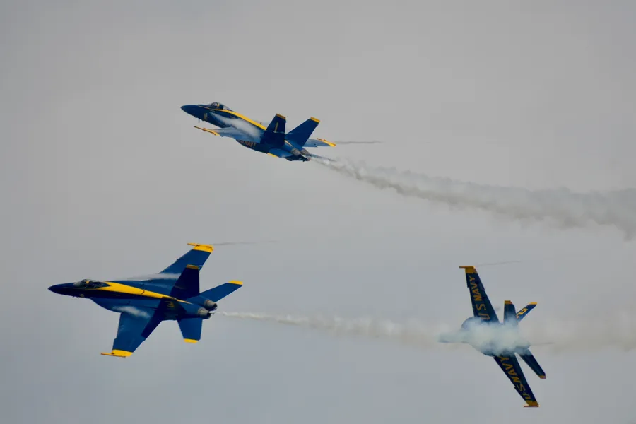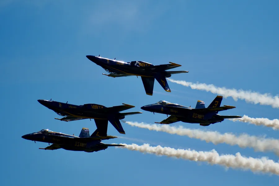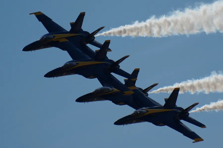 Aerobatic performances and military aircraft at the California Capital Airshow in Sacramento.